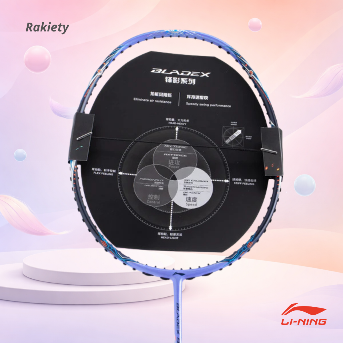 BladeX 900 MAX w wersji Moon (Księżyc) to szczyt inżynierii Li-Ning w dziedzinie szybkości i kontroli. W stosunku do bliźniaczej wersji „Sun”, model Moon charakteryzuje się minimalnie większą elastycznością trzonka. Został stworzony dla zawodników preferujących perfekcyjne czucie lotki, kontrolę tempa i niesamowitą zwinność w defensywie. Unikalna technologia stabilizacji ramy pozwala na precyzyjne plasowanie nawet pod ogromną presją ze strony przeciwnika.